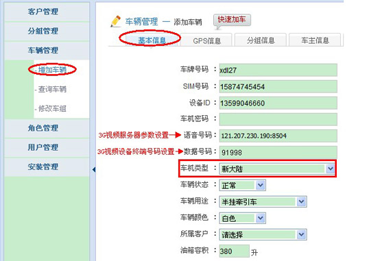 登录后台管理—增加车辆—填写车辆信息时,语音号码、数据号码的填写