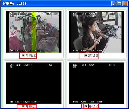 即可弹出视频终端显示框,选择相关视频通道,可以同时选择多个通道同时查看如图3