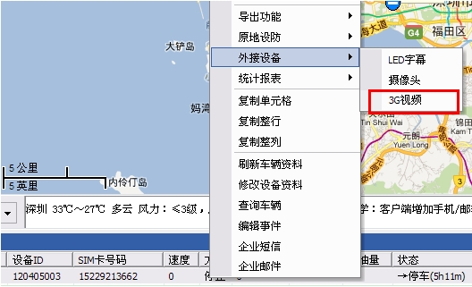 方法一:打开车辆窗,右键点击需要查看视频终端的车辆,选择“外接设备—>视频终端”如图2