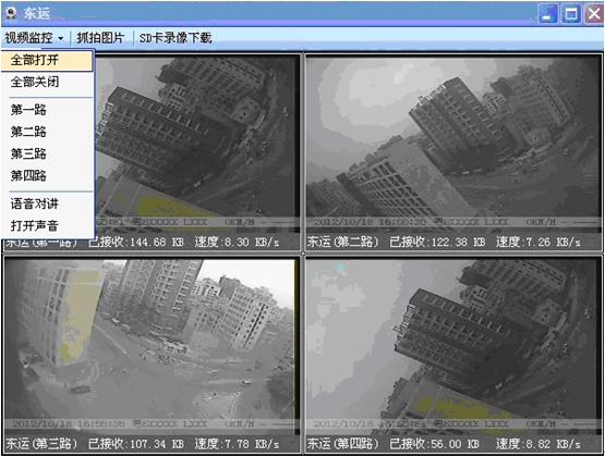 客户端新增“东运视频终端功能”,客户增加车辆时在后台管理车辆资料中填写视频连接参数。 东运视频终端界面(如图1)