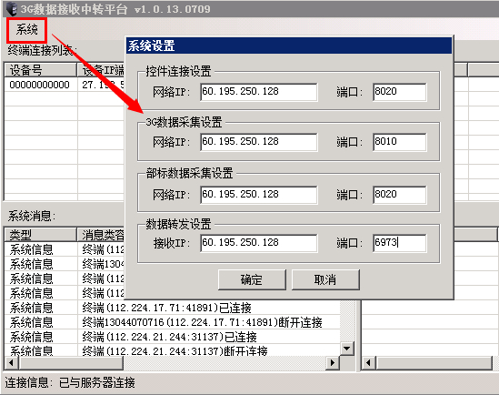 备注: 设置设备上传数据的ip为自己的服务器ip,端口为8010