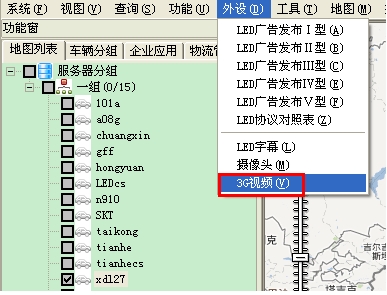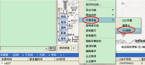 方法 一:打开车辆窗,右键点击需要查看视频的车辆,选择“外接设备—>视频”如下图