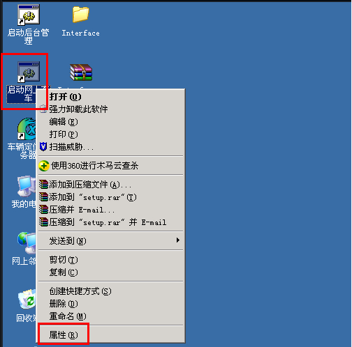 2.在服务器桌面“启动网上查车”快捷键处右键“属性”(如图2)--“查找目标”向上一级找到webapps(如这个路径: G:\exlive\gserver\tomcat-6.0.18\webapps),如图3
