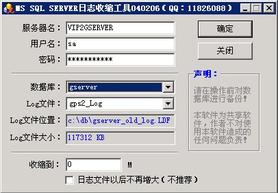 (注:使用此程序收缩数据库日志空间后,收缩的日志将被永久删除)