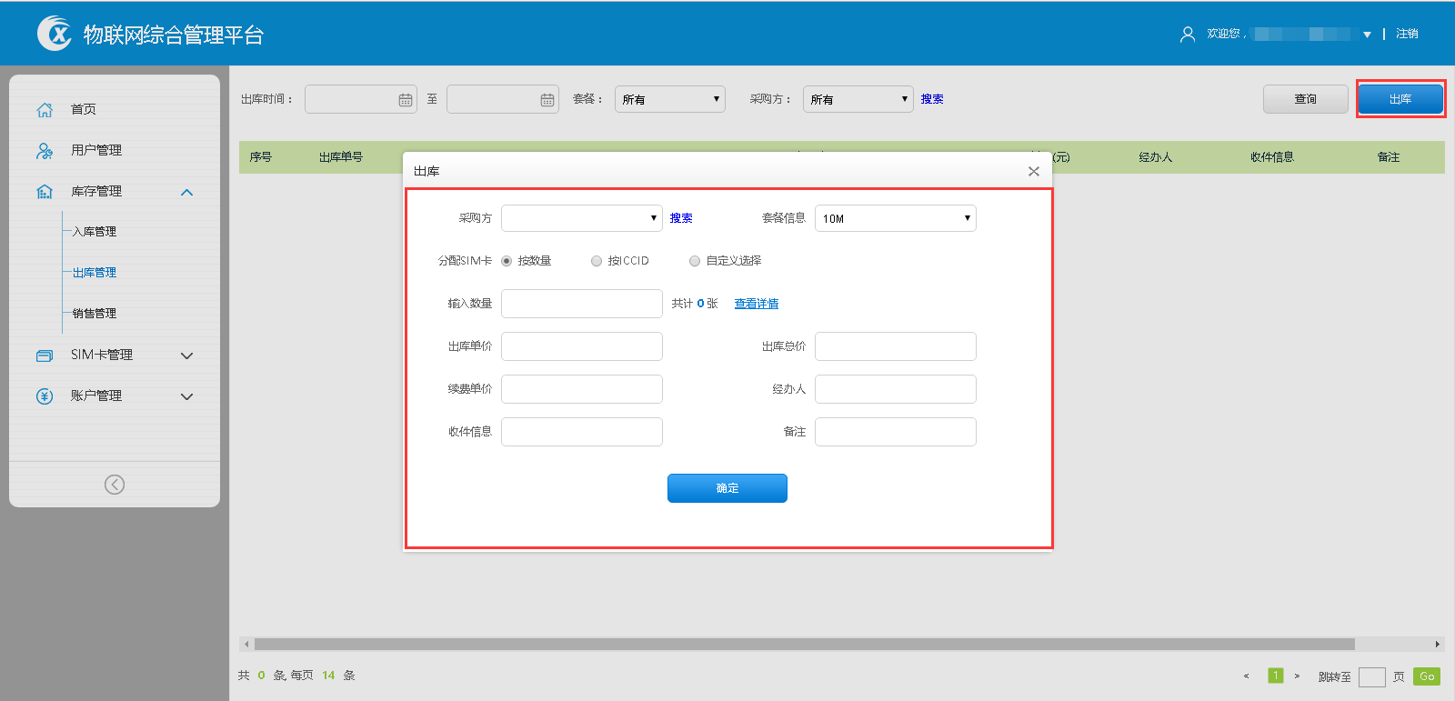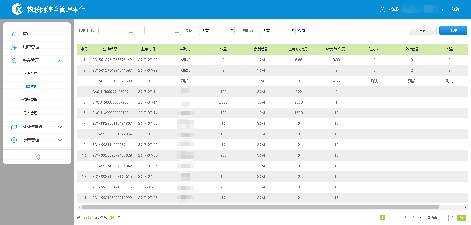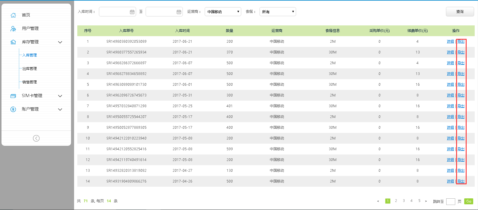 用来显示相关出库记录,以及详细出库SIM卡信息