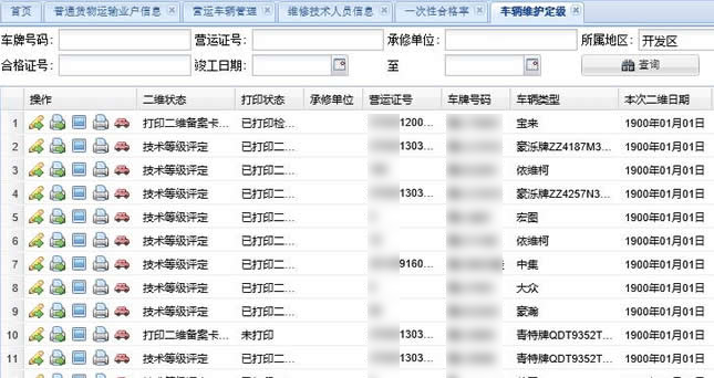 维修企业业务员登录系统,车辆查询中找到待进厂车辆 ,输入维修从业人员资格证号,验证完毕后开始打印维修合同。