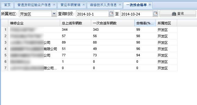 9.维修企业一次性上线合格率统计