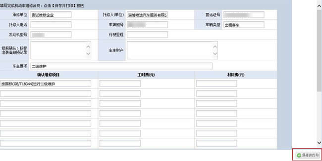 按照要求填写完毕以后,确认无误提交打印维修合同。