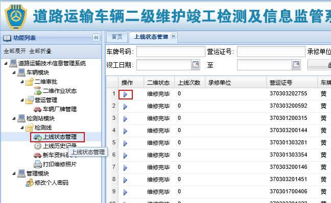 用户登录以后,点击上线管理,然后再点击列表的第一个图标,开始上线。