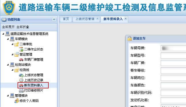 新车资料录入,新车不用进维修厂,直接上线,从这里录入车辆基本信息。