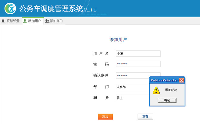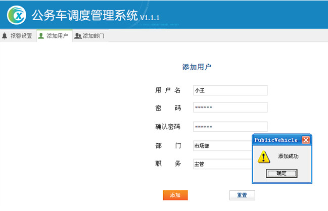 填写用户名—>设置密码—>确认密码—>选择部门—>选择职务(职务是固定的)如图21