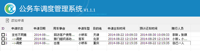 4.6直接打来看当前状态:显示调度说明已经同意使用车。不同意就显示主任,主管调度不同意。如图27
