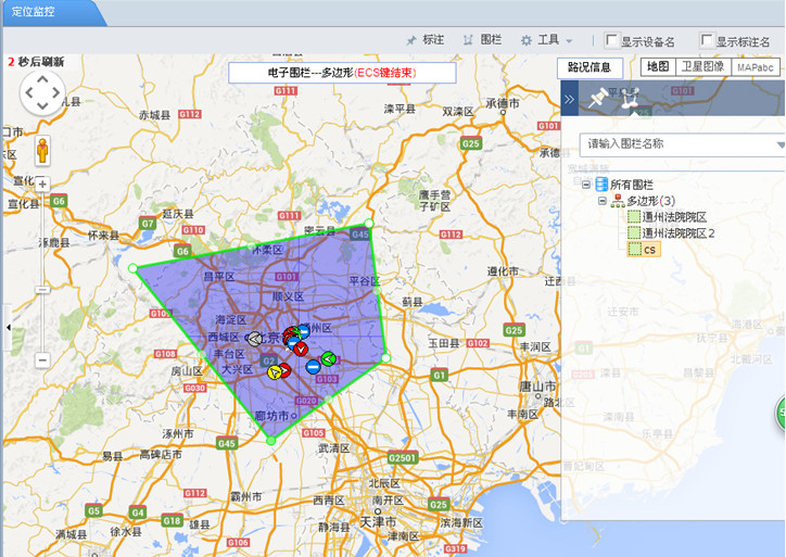 >> 地图监控:车辆位置定位、轨迹回放,跟踪,电子围栏,标注等。