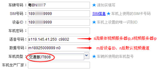 打开后台监控管理—增加车辆—基本信息,填写语音号码、数据号码、车机类型选择“交通部JT808”,如下图所示