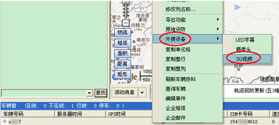 方法一:打开车辆窗,右键点击需要查看视频的车辆,选择“外接设备—>视频”如下图