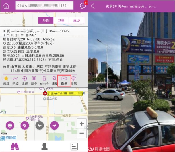 1.6)街景:用户可查看设备当前行驶路段周围的街景环境,随设备位置移动实时更新