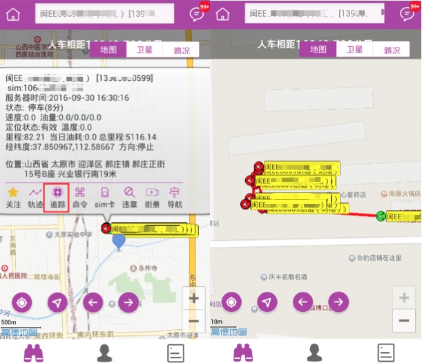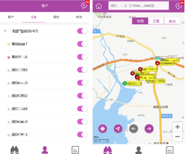 2.2)设备:点击关心的客户,地图上可以显示当前用户的车辆