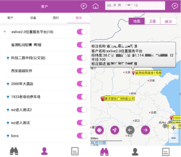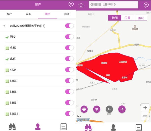 2.3)围栏:点击客户下的围栏信息,可在地图上查看点击围栏的具体信息