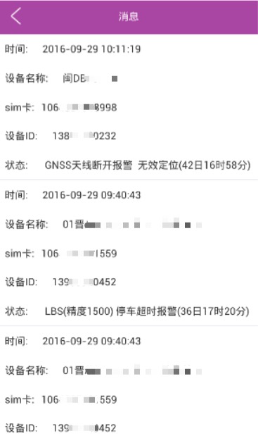 2.5)消息:可查看当前账号下报警设备的报警信息