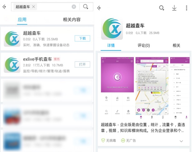 一、下载安装 EXLIVE超越位置服务平台手机查车-企业版下载及安装