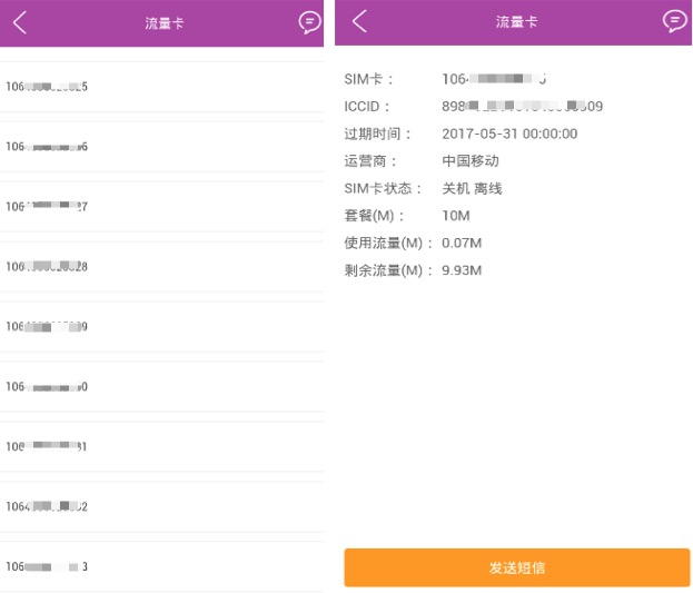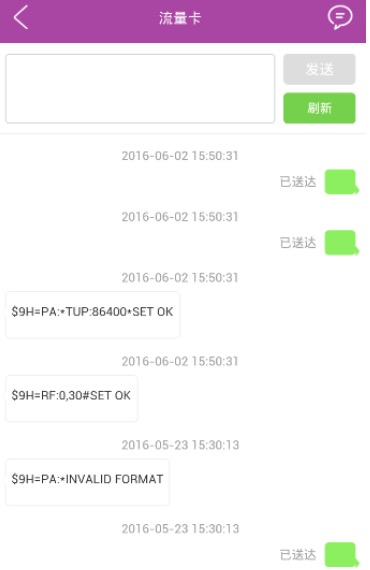 如有购买超越物联网流量卡可通过手机查车查看设备sim卡流量使用情况,并且可以发送短信,查看短信记录