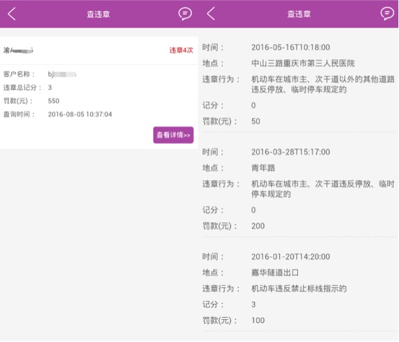 可查看设备违章情况及每次违章的位置、时间、违章行为