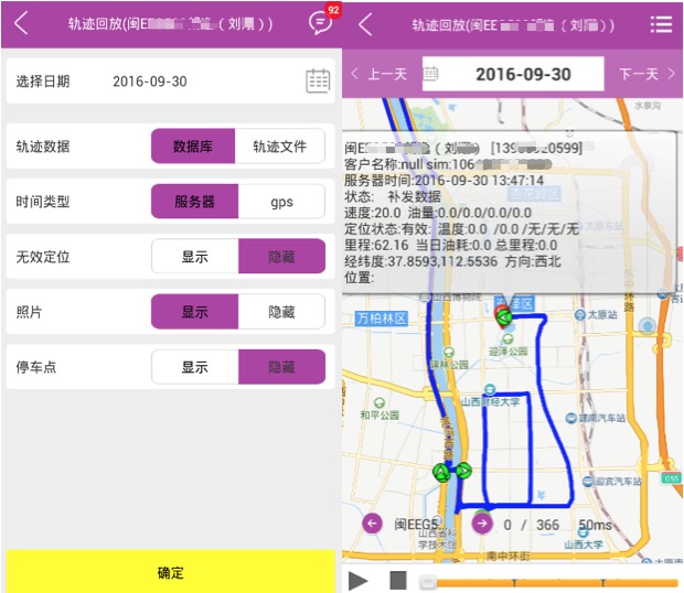 1.3)历史轨迹:回放车辆的历史轨迹、并对车辆的历史轨迹进行分析