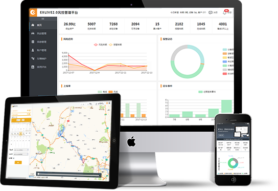 “exlive2.0风控管理平台”就是平台功能从通用行业监控到信贷行业风险控制转变的一个产品,在这个转变中卫星定位与报警将作为诸多分析预警的一个基础数据,而发挥重要作用,通过卫星定位数据与其它数据的综合分析来向运营者提供一个事前、事中、事后的风险分析与预警。“exlive2.0风控管理平台”是由首页、风控管理、信息管理、账户管理、车辆维护、信用评估六大模块组成。